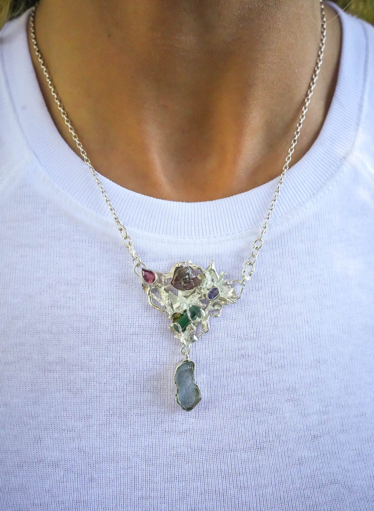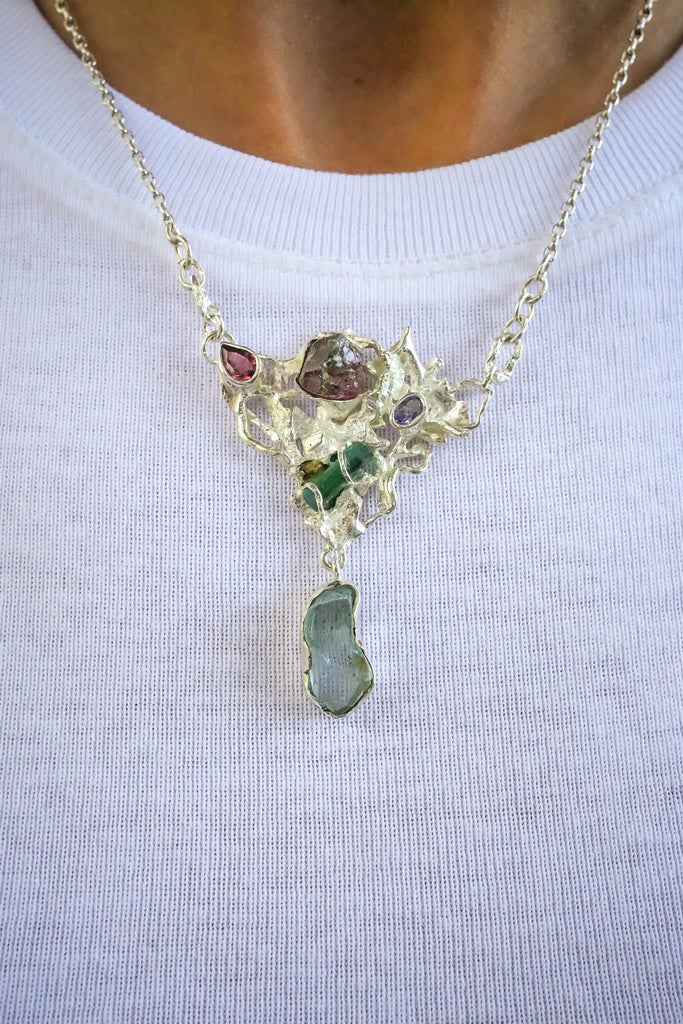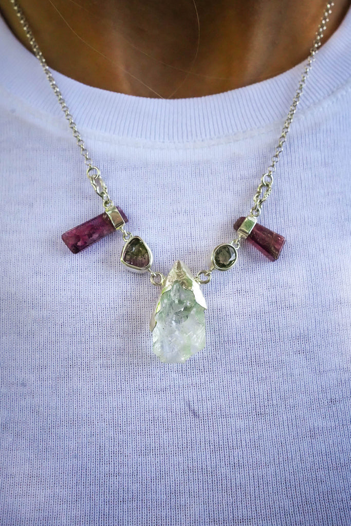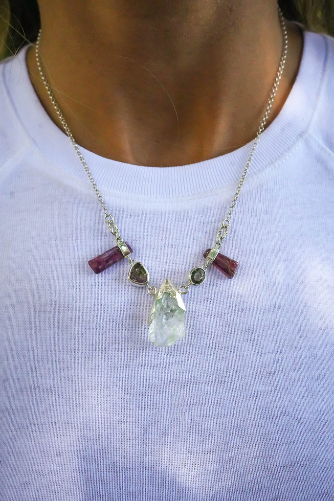 Aquamarine Necklace with Iolite and Pink, Green and Watermelon Tourmaline