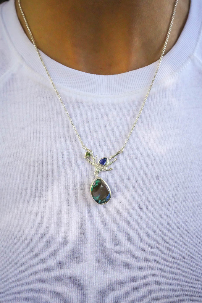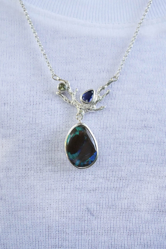 Australian Boulder Opal Necklace with Kyanite and Green Tourmaline