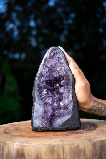 This enchanting and petite Amethyst Geode features Amethyst quartz points that shimmer with natural beauty and tranquility. Known for its calming properties, this geode brings peaceful energy to any space. Its sparkling crystals make it a perfect addition to your collection, home décor, or as a thoughtful gift. A beautiful symbol of serenity and inner peace, this geode adds an elegant touch to any setting.
