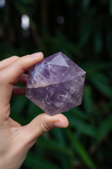 This piece of translucent Amethyst has been carefully artisan polished into a faceted star shape. Amethyst is often used as a symbol of peace and unification and is also thought to evoke feelings of serenity and calmness. This faceted shape will reflect the light and delight the beholder while representing the wonderful qualities of Amethyst.