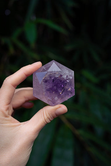 This piece of translucent Amethyst has been carefully artisan polished into a faceted star shape. Amethyst is often used as a symbol of peace and unification and is also thought to evoke feelings of serenity and calmness. This faceted shape will reflect the light and delight the beholder while representing the wonderful qualities of Amethyst.