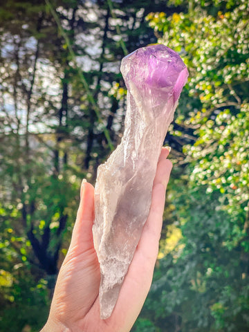 This celestial Amethyst scepter is a powerful and protective form which is said to energetically support intuition, peace and divine tranquility. According to legend, the scepter quartz was used in Lemuria and Atlantis as a symbol of spiritual authority and power.The unique way in which a scepter is formed ensures there are no two quite the same. Feel drawn to whichever one you most desire.