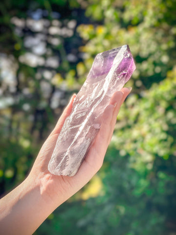 This celestial Amethyst scepter is a powerful and protective form which is said to energetically support intuition, peace and divine tranquility. According to legend, the scepter quartz was used in Lemuria and Atlantis as a symbol of spiritual authority and power.The unique way in which a scepter is formed ensures there are no two quite the same. Feel drawn to whichever one you most desire.