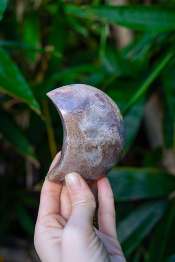 Enhance your space with the serene beauty of this Pink Amethyst Moon. With its gentle pink tones and soft pastel hues, this unique crystal combines aesthetic appeal with gentle, calming energy. Thought to promote emotional balance, clarity, and a sense of peace, pink amethyst can be a soothing addition to any environment.