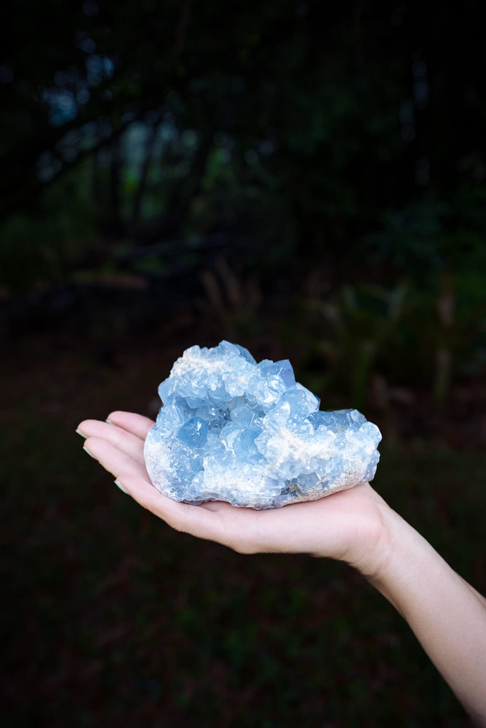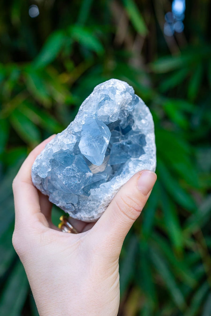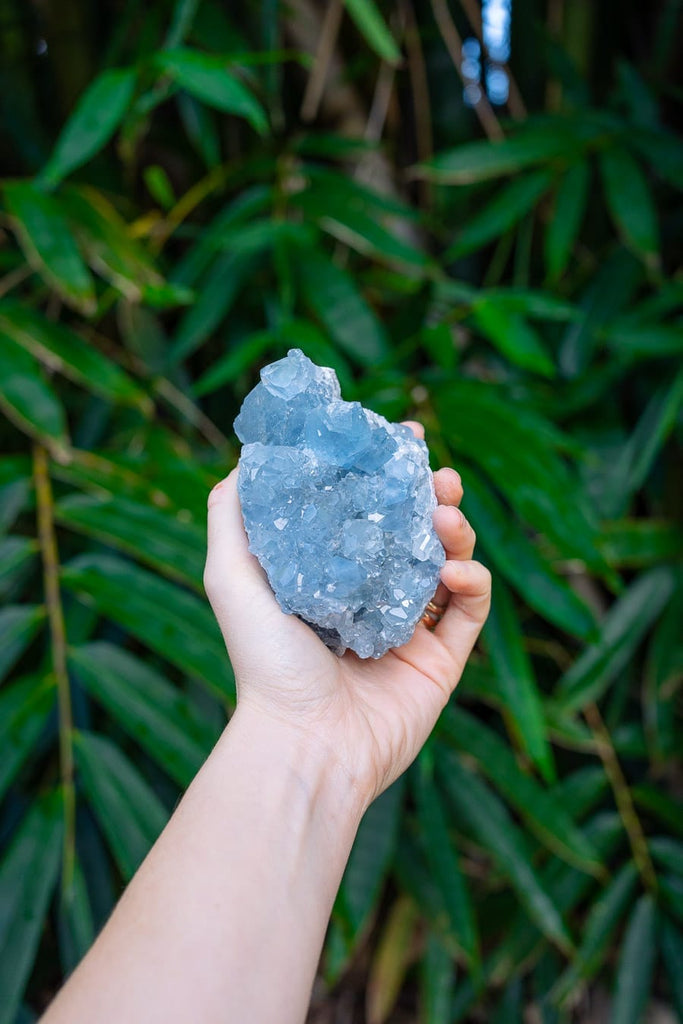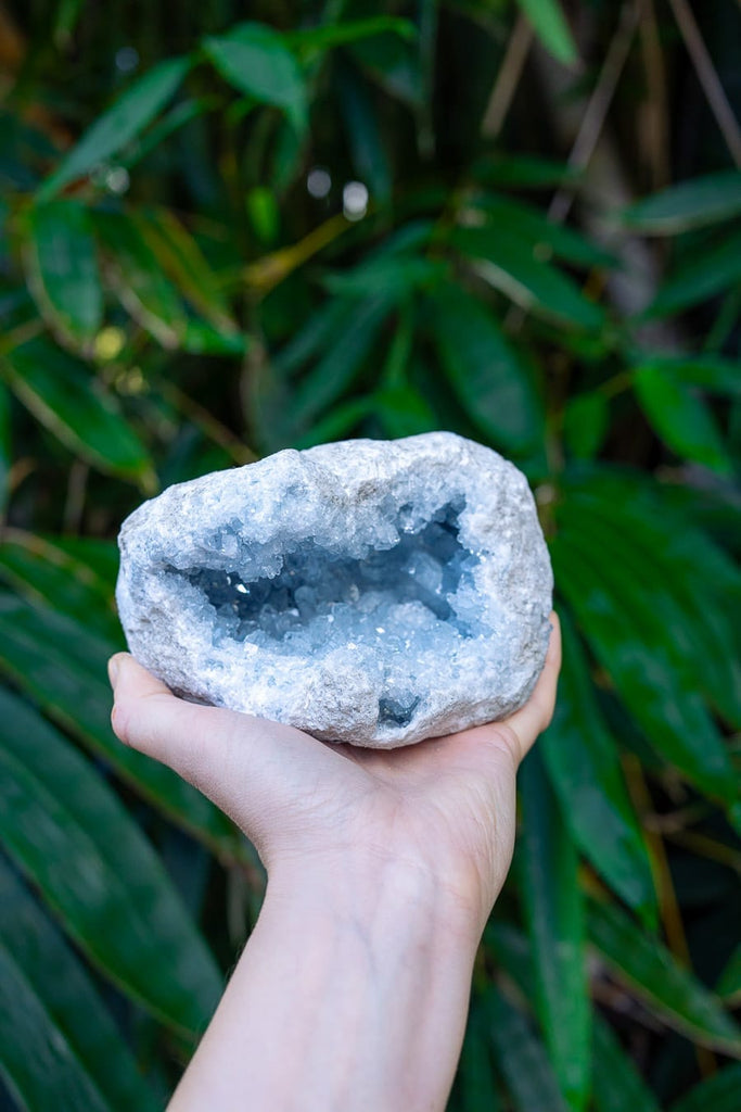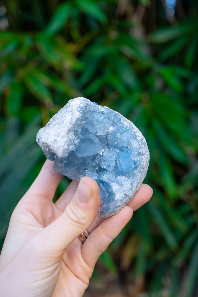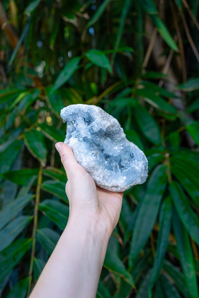 Known as a calming, soothing, gentle stone that radiates uplifting energy, Celestite is said to connect your consciousness to divine realms whilst keeping you connected to the earth.