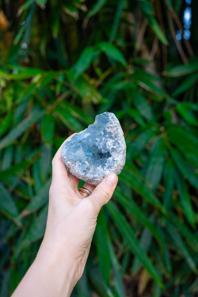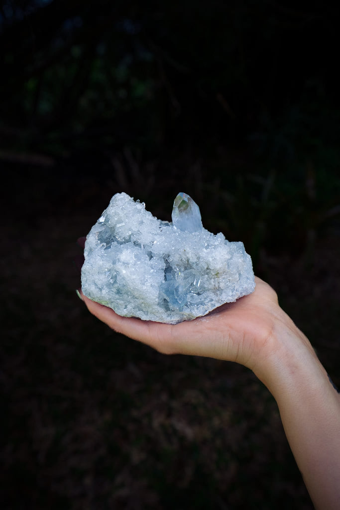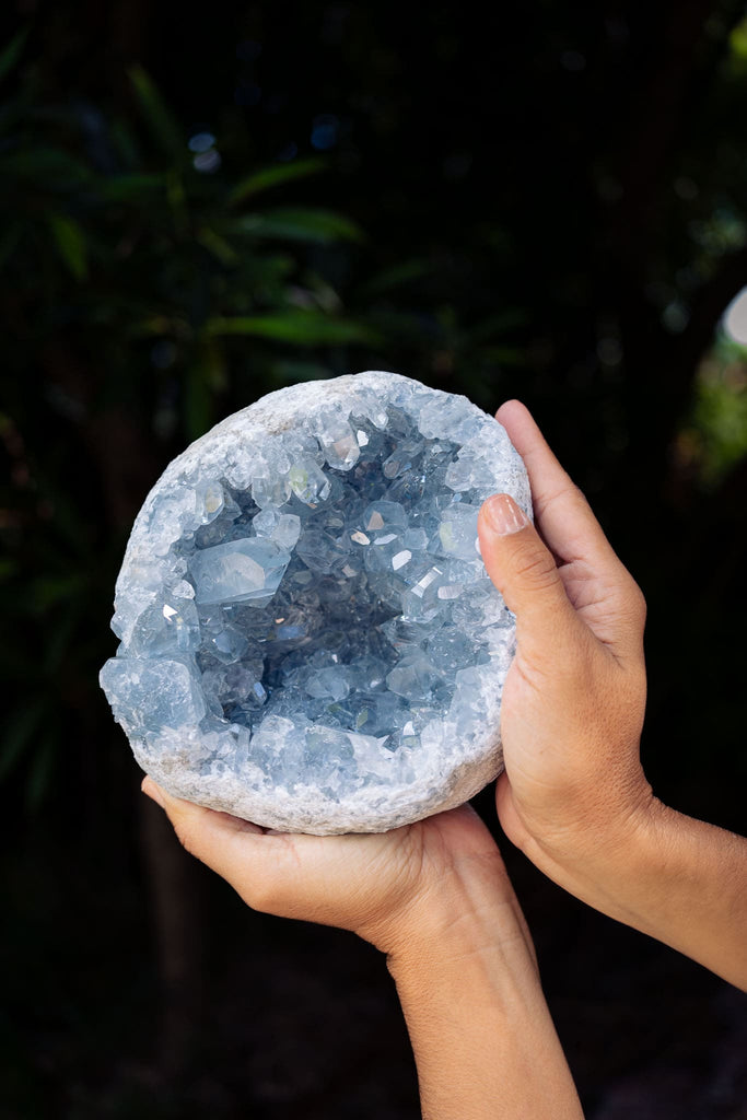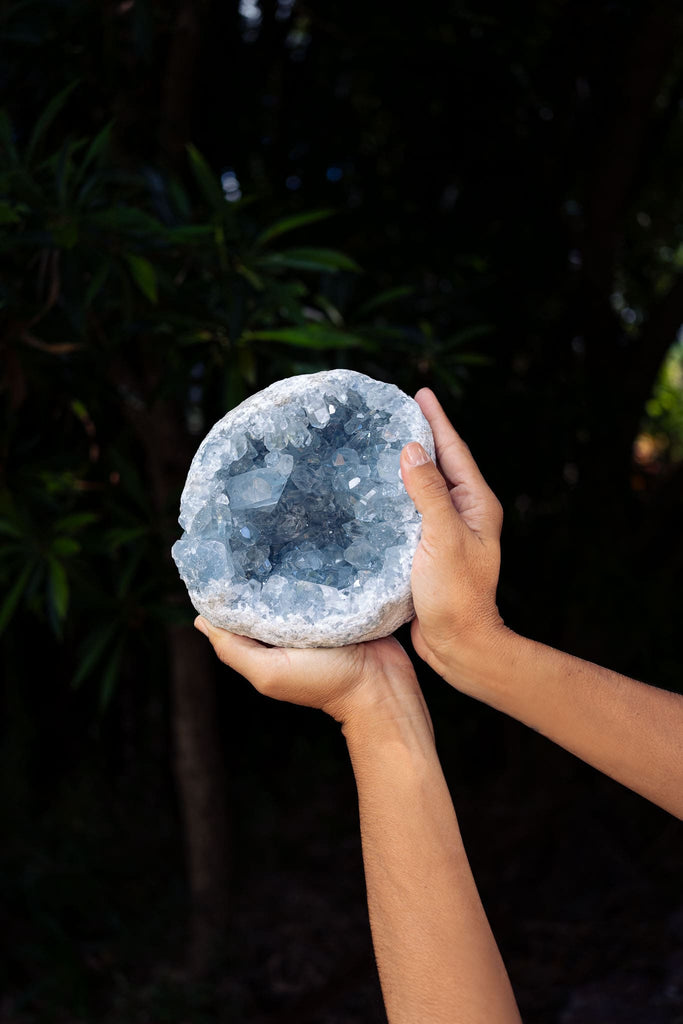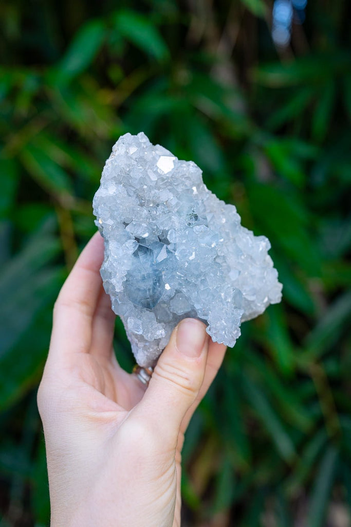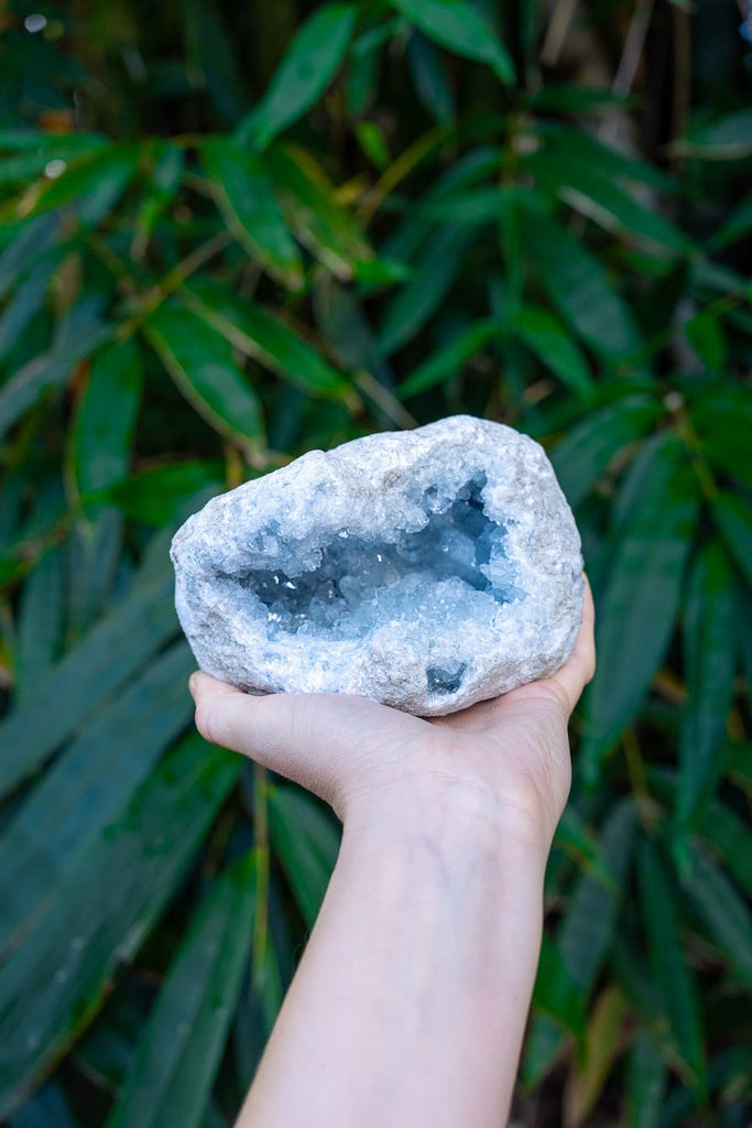 Known as a calming, soothing, gentle stone that radiates uplifting energy, Celestite is said to connect your consciousness to divine realms whilst keeping you connected to the earth.