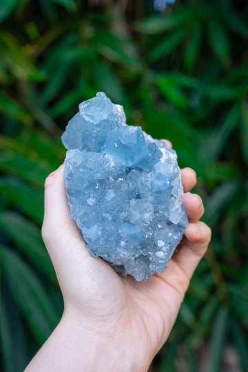 This ethereal Celestite cluster is made up of exquisitely formed crystal points in soft pastel blues. Celestite is believed to be a powerful activator of the Throat Chakra, as well as the Third Eye and Crown Chakras. This crystal was named after the Latin word for ‘heavenly’ because Celestite is thought to be a Stone of Heavenly Communication, and is one of the most effective for connecting with one’s guardian angels or spirit guides. A stunning crystal to radiate a soft, positive and heavenly energy.