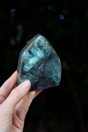 This stunning petite Labradorite freeform captures the stone's enchanting iridescence, with flashes of blue, green, and gold that shift with the light. Handcrafted into a smooth, freeform shape, this piece beautifully highlights the unique play of color Labradorite is known for, making it a striking addition to any crystal collection. Labradorite is often called the "Stone of Magic" due to its mystical energy, believed to enhance intuition, creativity, and spiritual awareness.