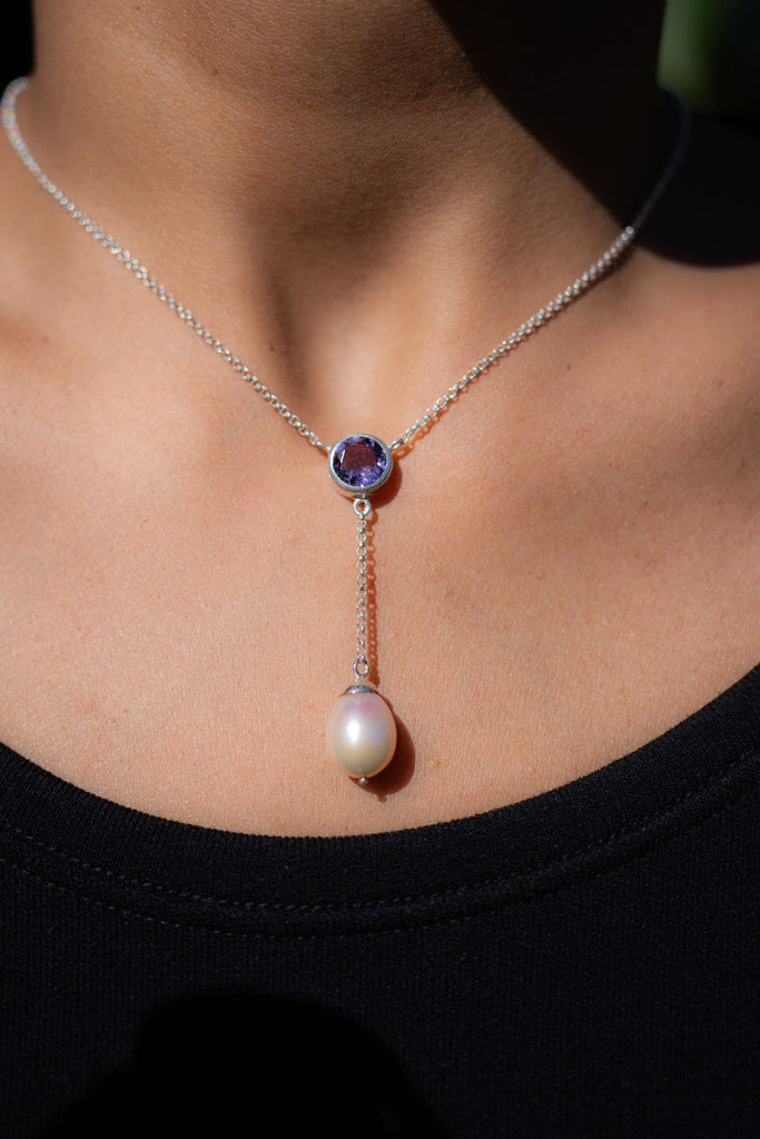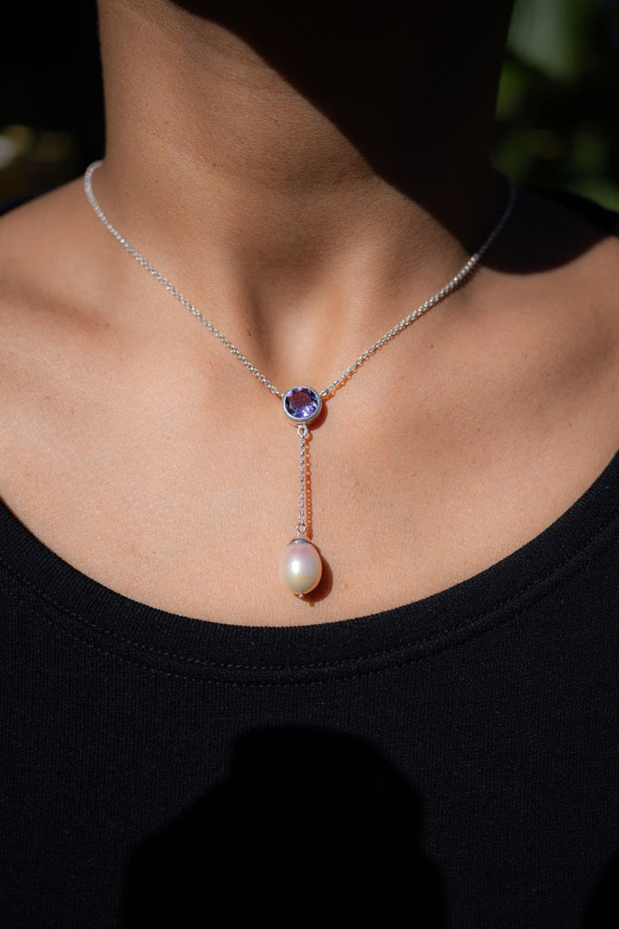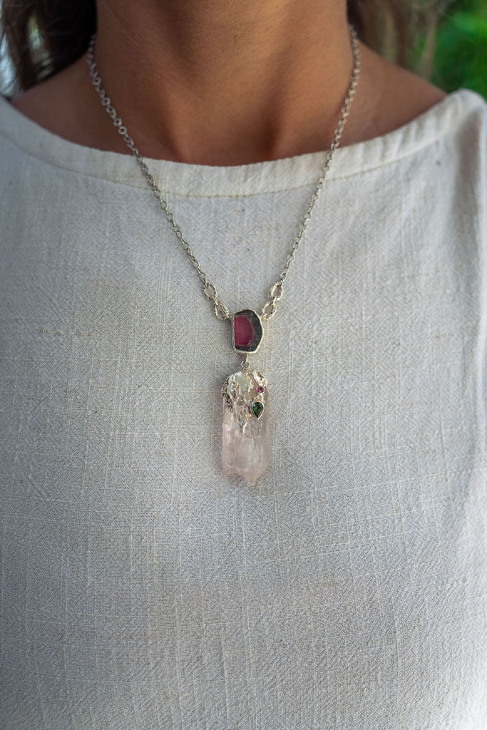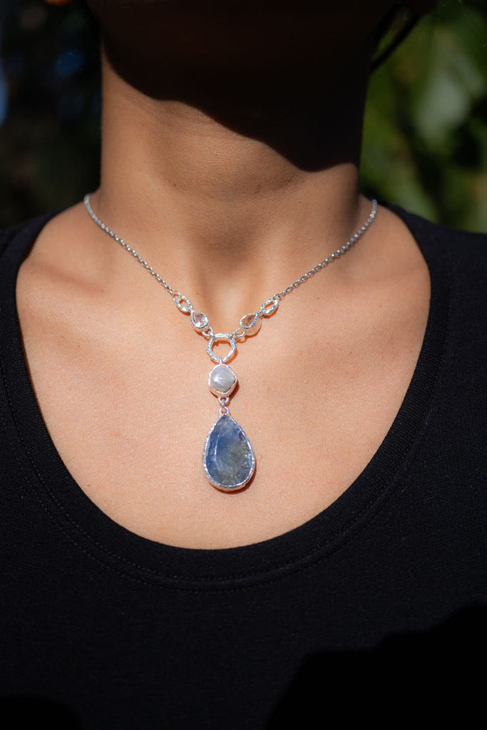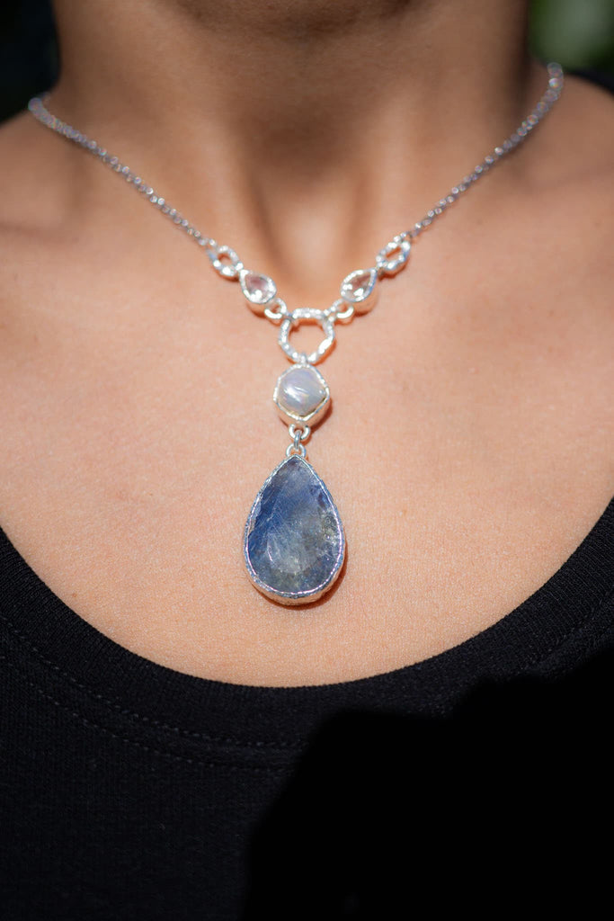 Tanzanite, Pearl, Morganite and Clear Quartz Necklace