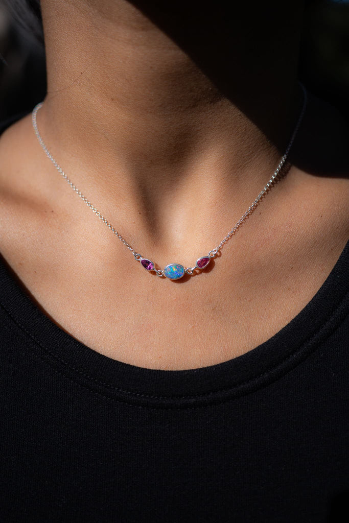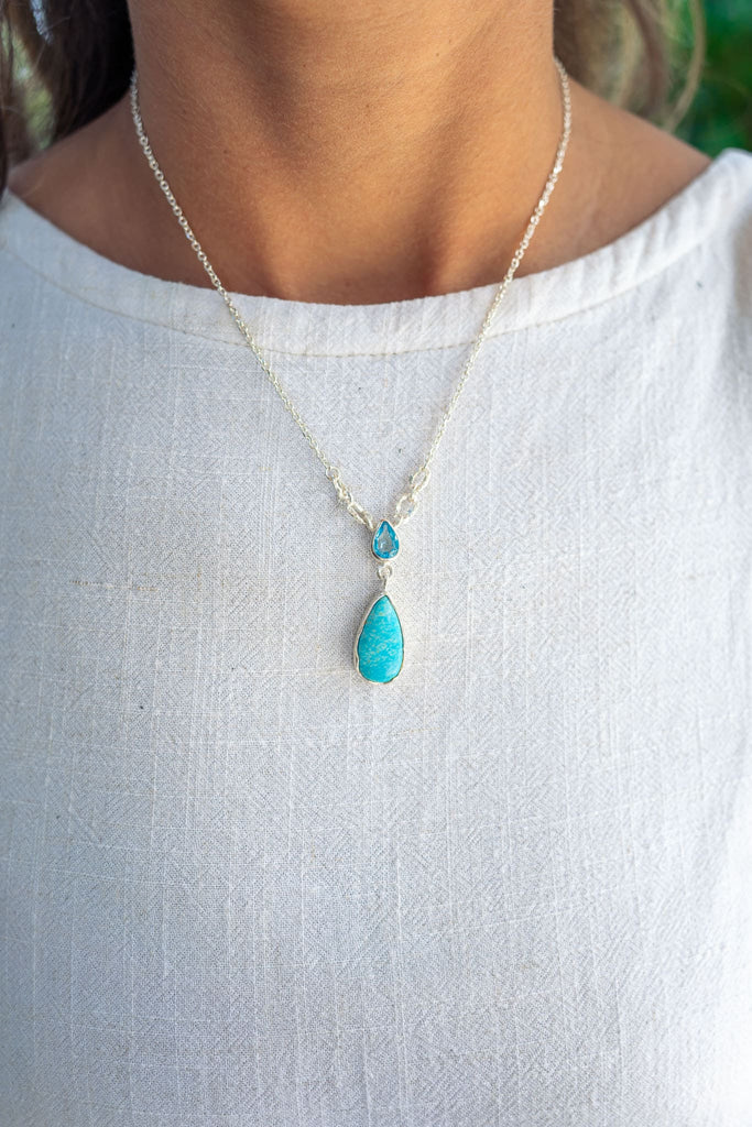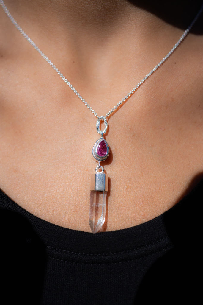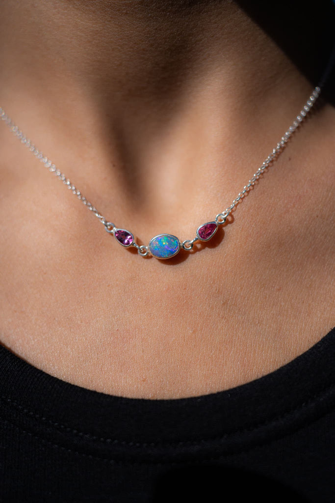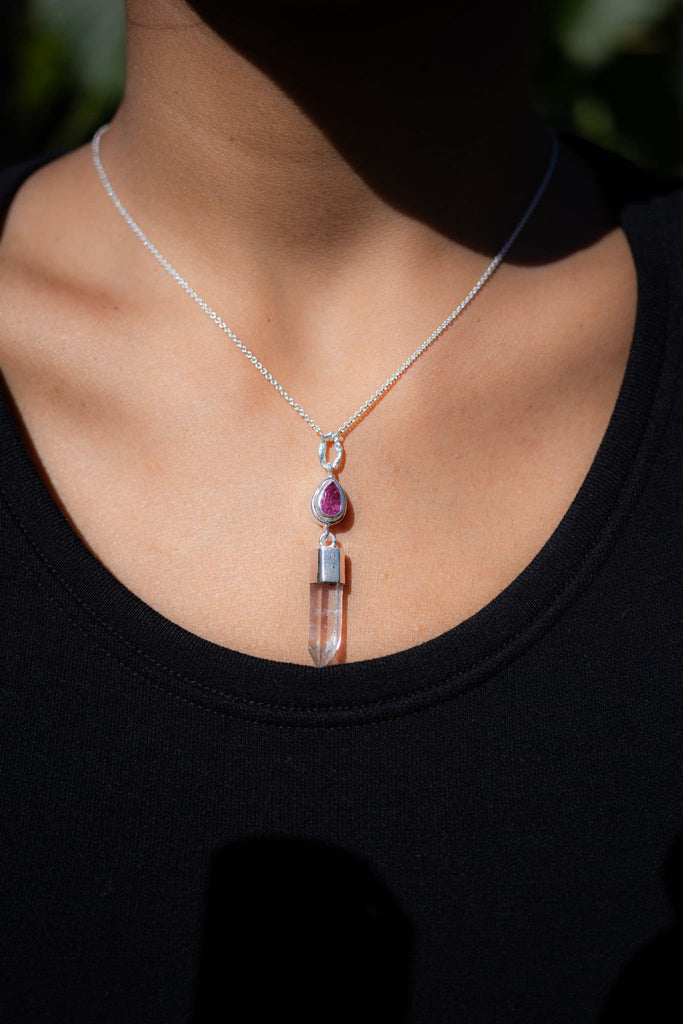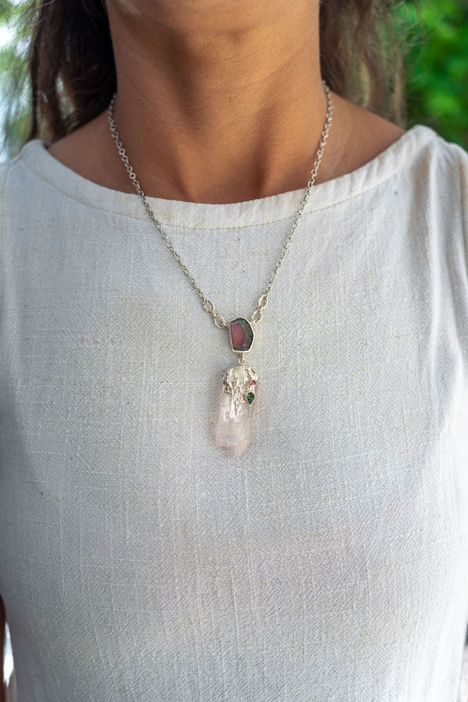 Tanzanite, Pearl, Morganite and Clear Quartz Necklace