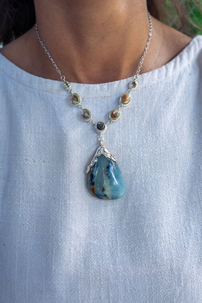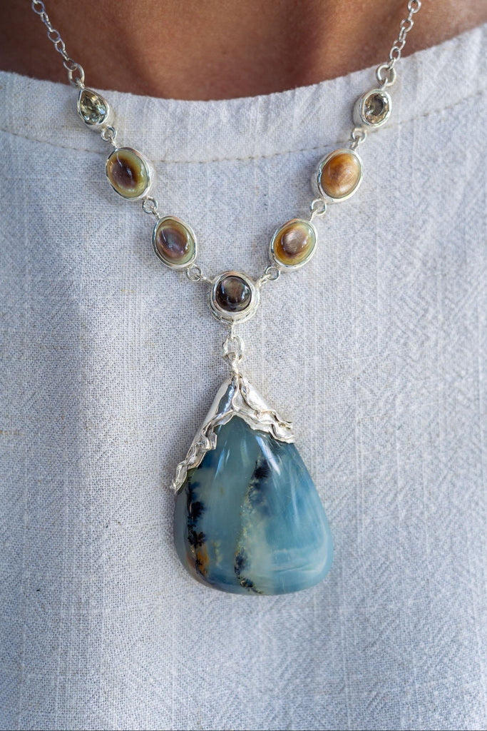 Dendritic Peruvian Opal with Pearl and Citrine Necklace