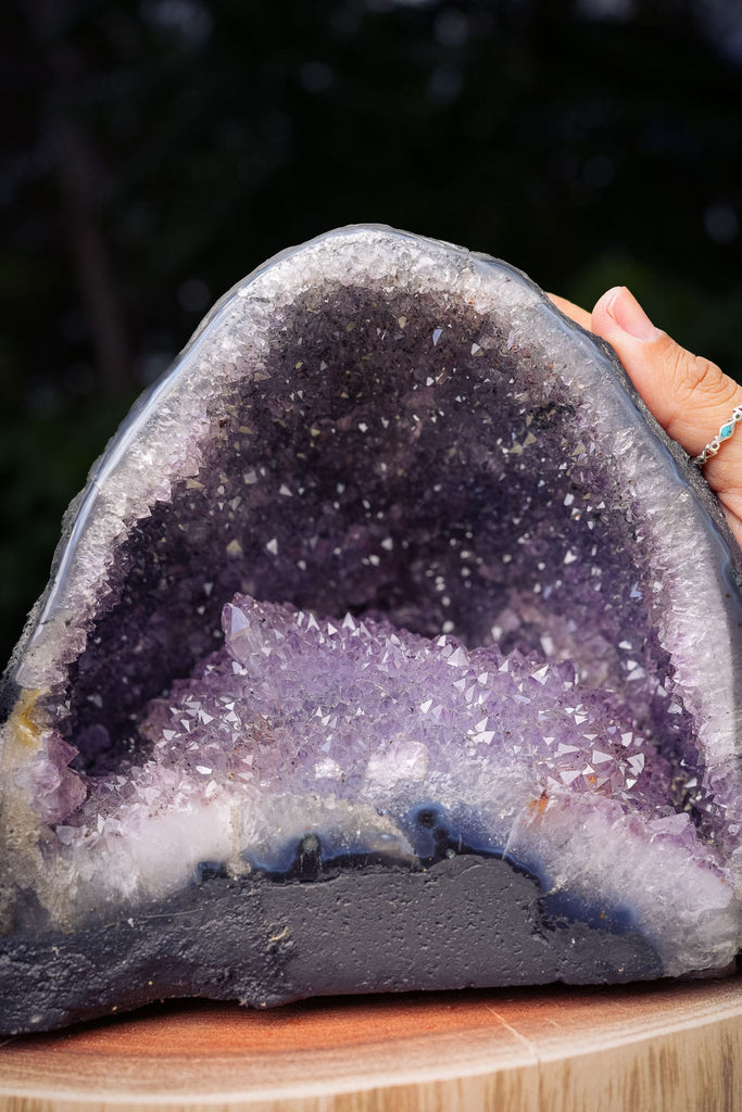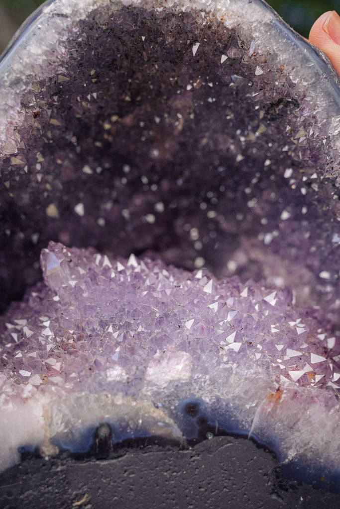 Discover the serene beauty of this Lavender Amethyst Geode, featuring delicate lavender points. Known for its calming and healing properties, this geode brings a peaceful energy to any room. Each point sparkles with a unique shimmer, reflecting the light in a way that draws the eye. Perfect for collectors, crystal enthusiasts, or as a striking decorative piece, this geode will evoke feelings of serenity and calmness and bring about a sense of peace.