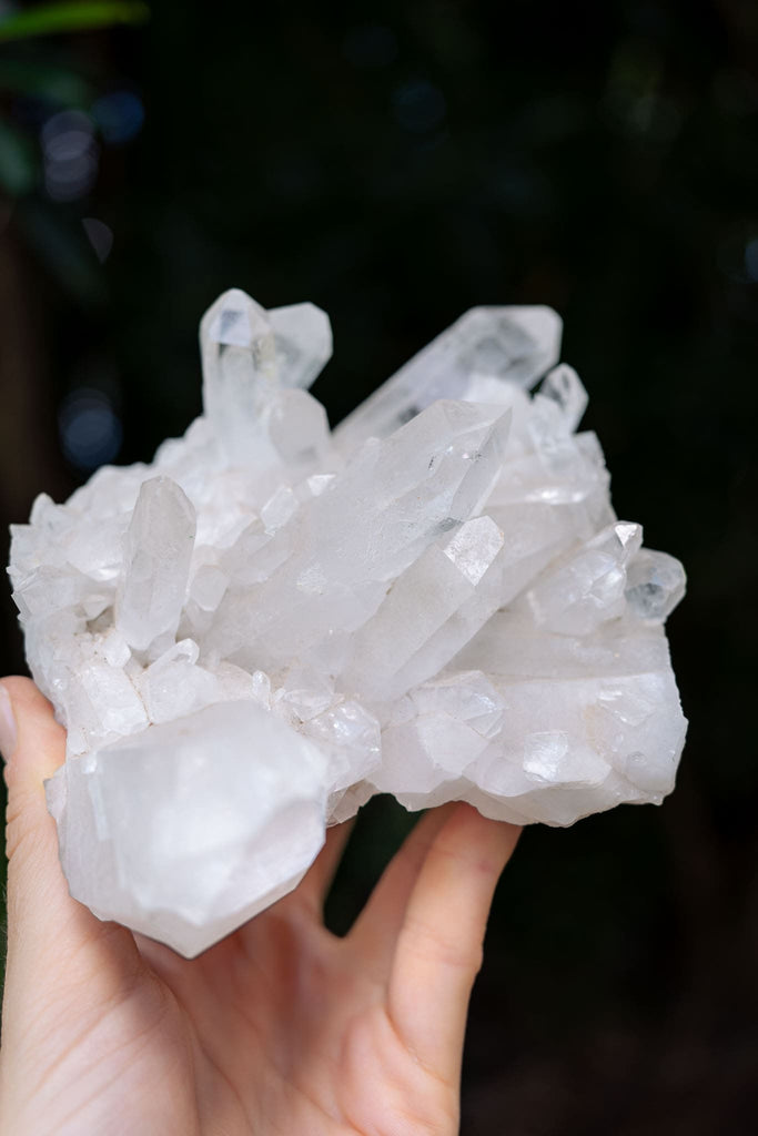 This stunning Arkansas Quartz cluster features a vibrant array of natural, crystalline points, each radiating with brilliance. Known for its high-quality, pure crystal formations, Arkansas Quartz is prized for its ability to amplify energy and intentions. The cluster’s sparkling points create a dazzling display, making it a striking centrepiece for any collection or home decor. The energy of Arkansas Quartz is believed to be exceptionally clear and powerful, promoting healing, balance, and mental clarity.