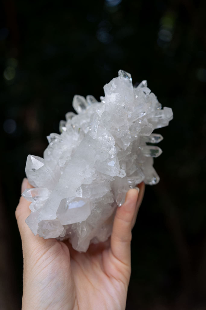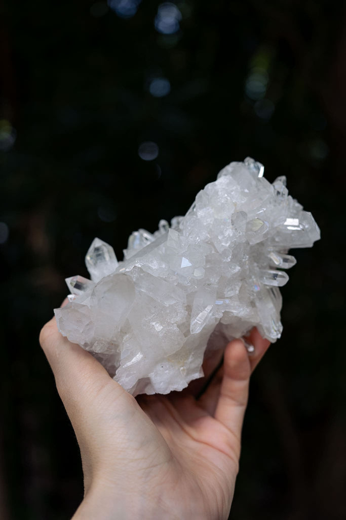 This stunning Arkansas Quartz cluster features a vibrant array of natural, crystalline points, each radiating with brilliance. Known for its high-quality, pure crystal formations, Arkansas Quartz is prized for its ability to amplify energy and intentions. The cluster’s sparkling points create a dazzling display, making it a striking centrepiece for any collection or home decor. The energy of Arkansas Quartz is believed to be exceptionally clear and powerful, promoting healing, balance, and mental clarity.