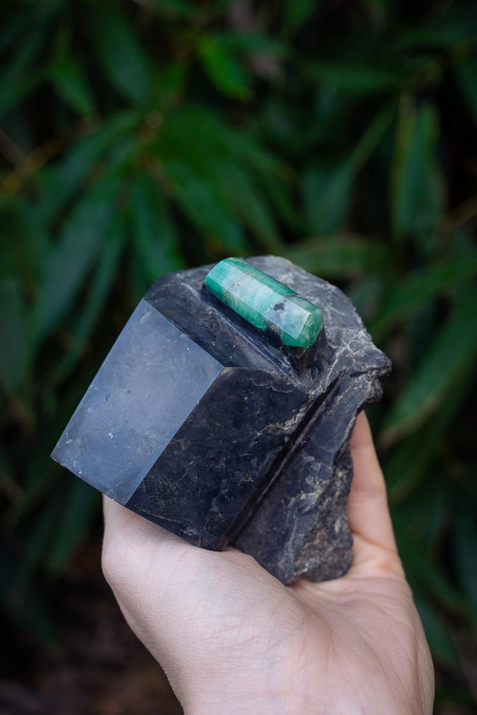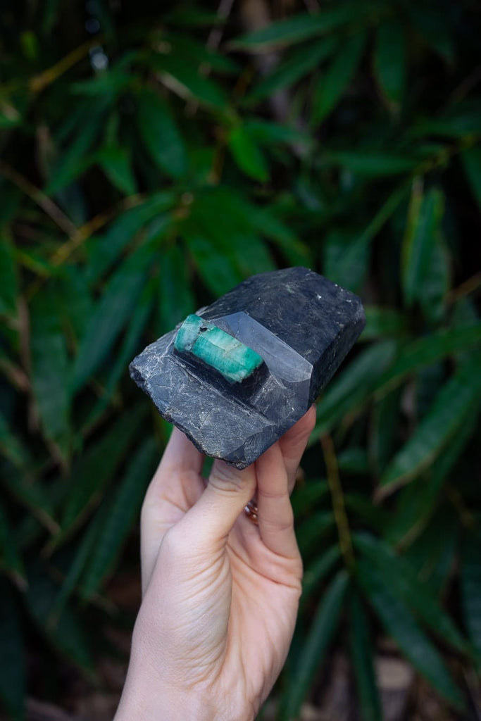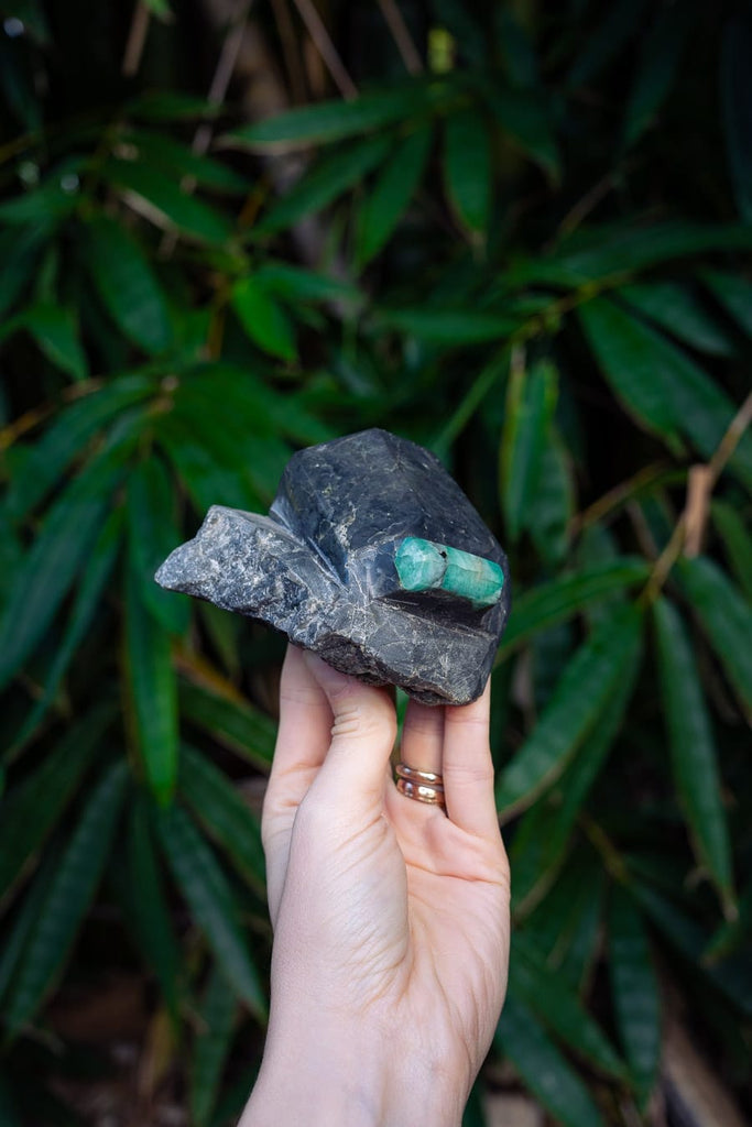 This semi-polished Emerald piece contains marbled hues of light to saturated green set within the original matrix. Emerald incredibly forms naturally in a hexagonal shape, therefore this piece is only lightly polished for extra shine. The harmonious Emerald green tones are beautifully showcased against the surrounding matrix. A tribute to the raw and unbridled beauty of the natural world and the perfect centrepiece for any living space. Emerald is the perfect crystal to encourage a harmonious and peaceful living space by opening the heart chakra and balancing emotions.