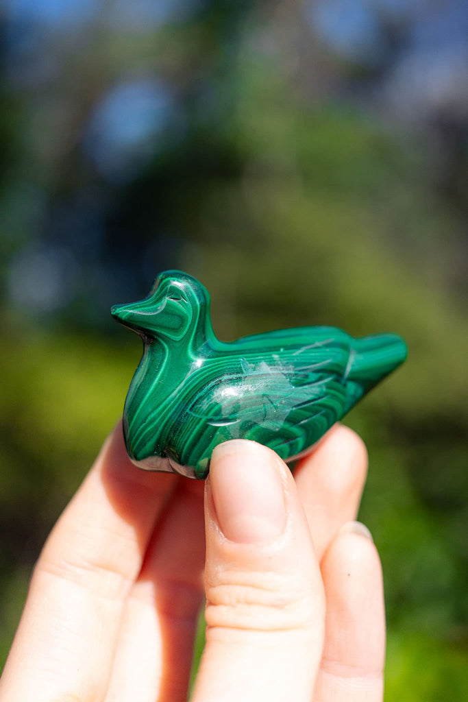 This small Malachite animal carving is a charming fusion of natural beauty and symbolic meaning. With its vivid green tones and signature swirling patterns, each piece is completely unique—just like the creature it represents. Malachite is believed to be a powerful stone of transformation and protection, said to absorb negative energy and support personal growth. Whether displayed as a totem, keepsake, or spiritual companion, this special Malachite animal brings strength, grounding, and a vibrant life force to any space.