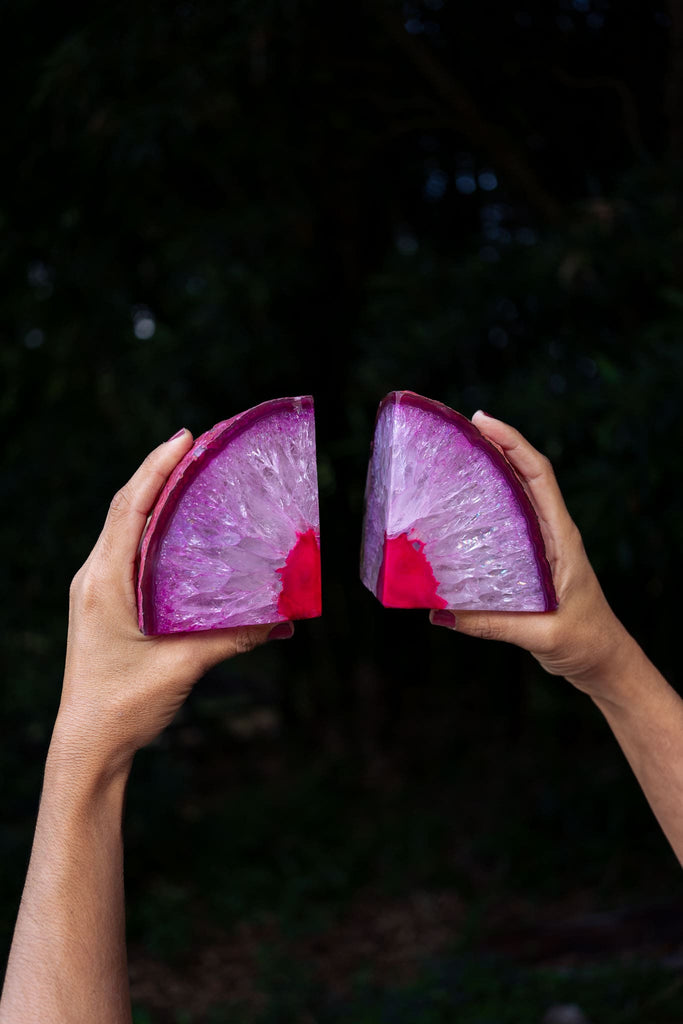 Pink Agate Bookends