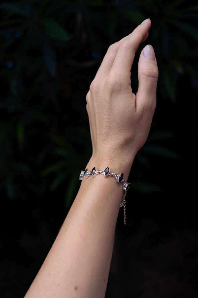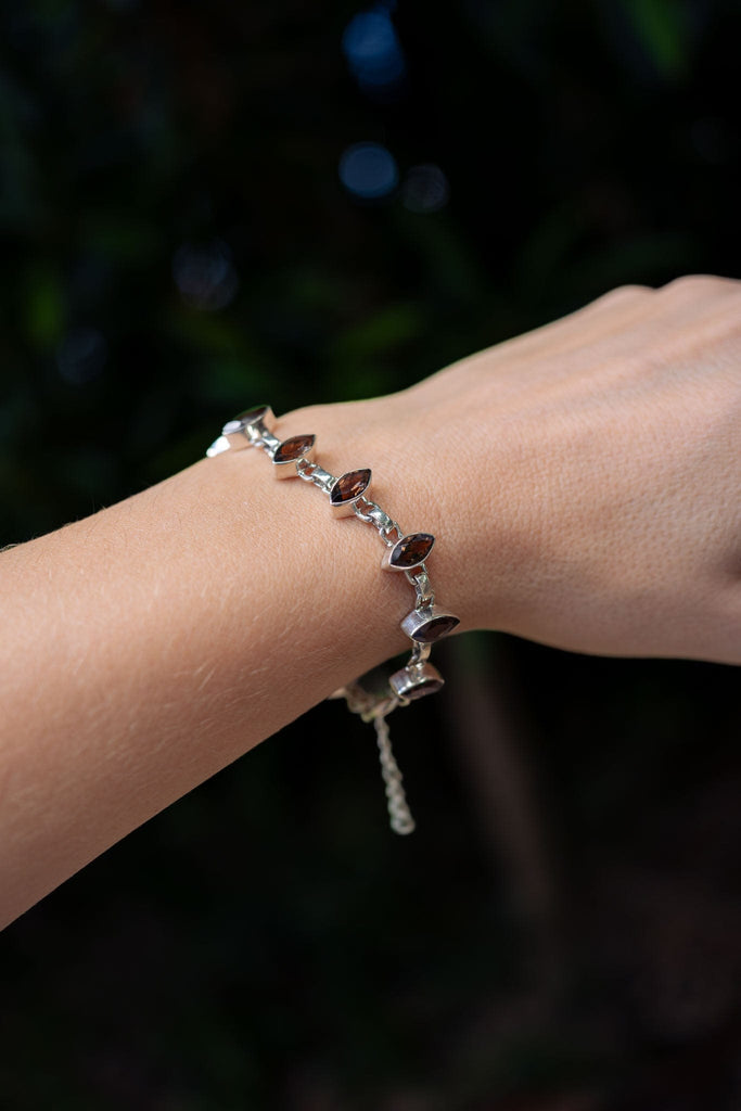 These alluring faceted Smoky Quartz crystals are encapsulated in silver and linked together to create this stunning bracelet. While the faceted shape will sparkle in the light, the mystical brown tones that will bring the beholder a sense of groundedness. Smoky Quartz has a strong association with the earth and base chakras, making it ideal for environmental consciousness.