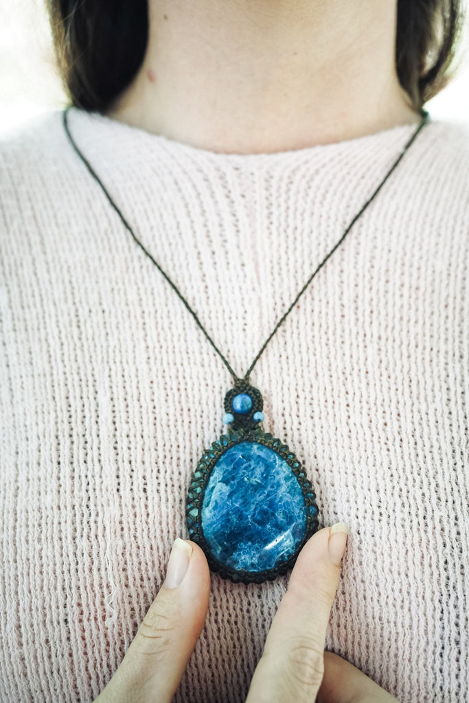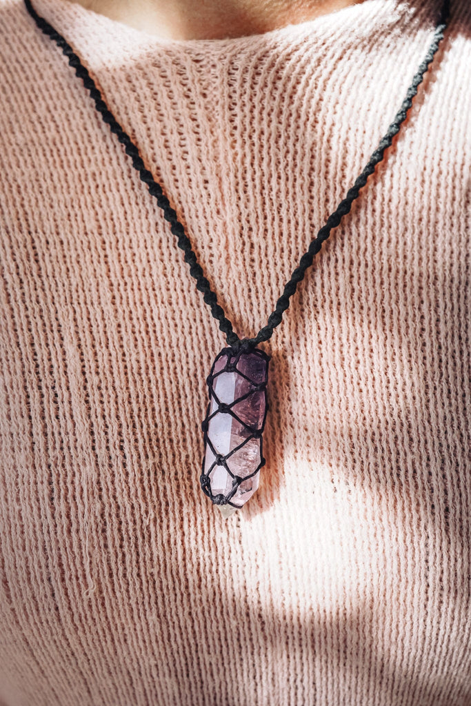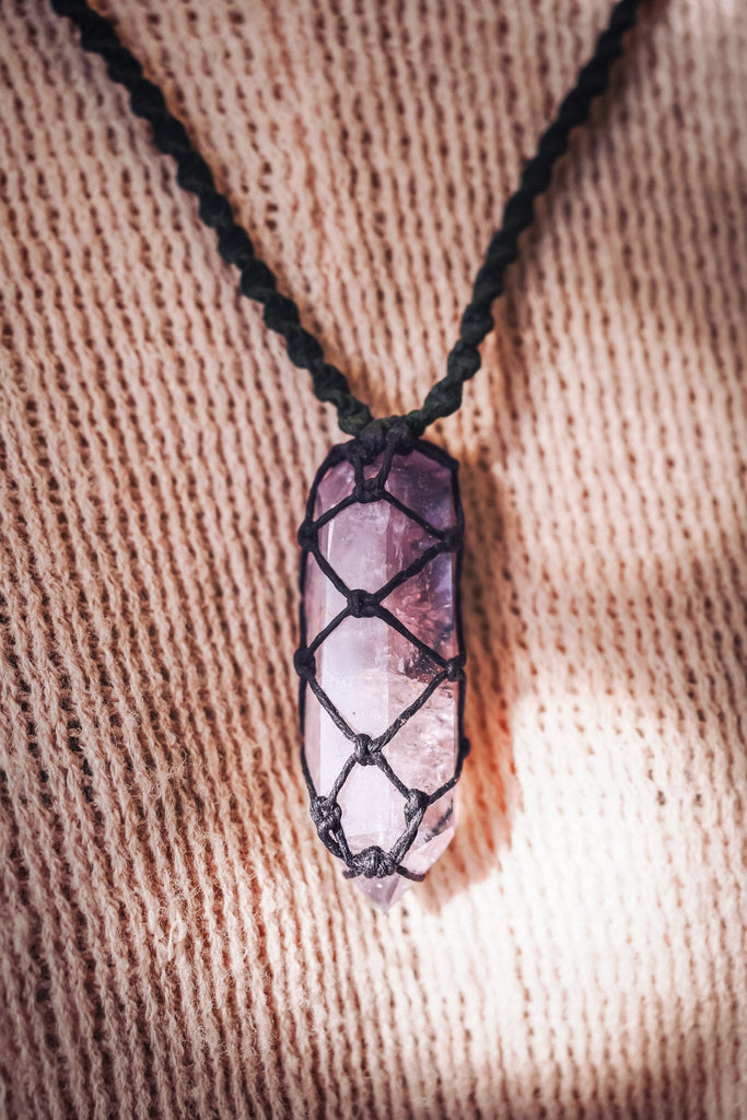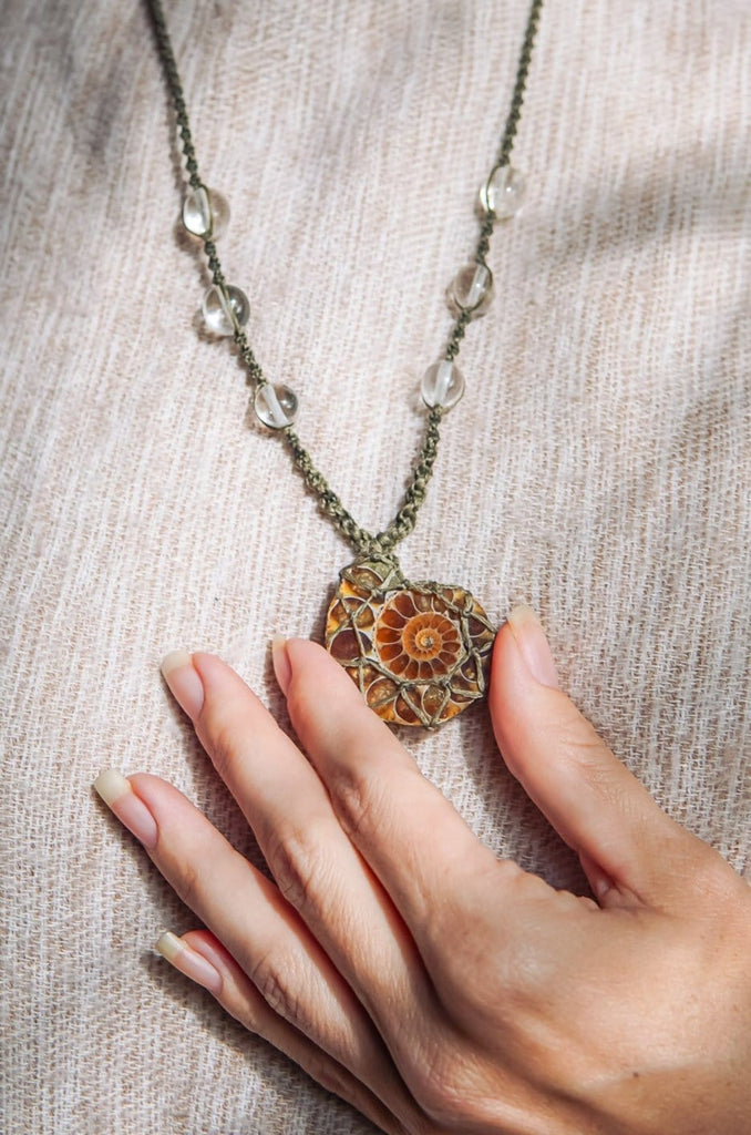 Crystalised Ammonite Fossil with Clear Quartz Necklace