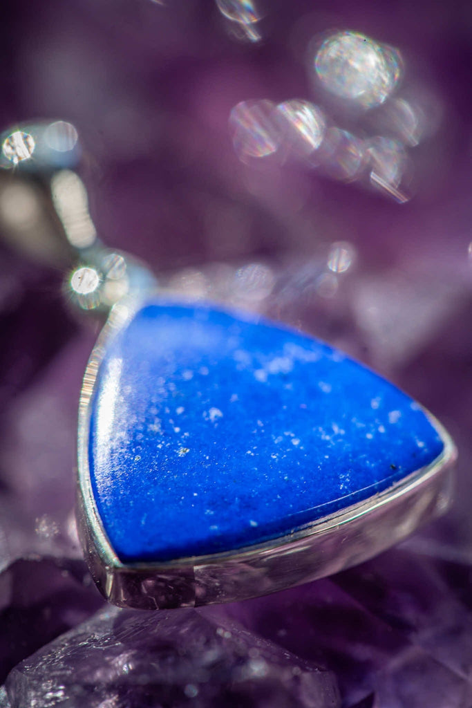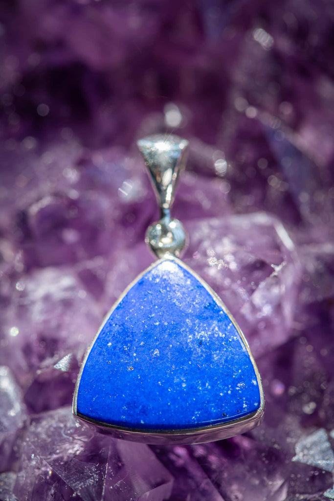 This vibrant high-grade Lapis Lazuli pendant is ready to adorn a silver chain or leather cord. Crafted from 925 sterling silver and featuring a carefully polished piece of exceptional Lapis Lazuli to bring about a touch of ancient wisdom.
