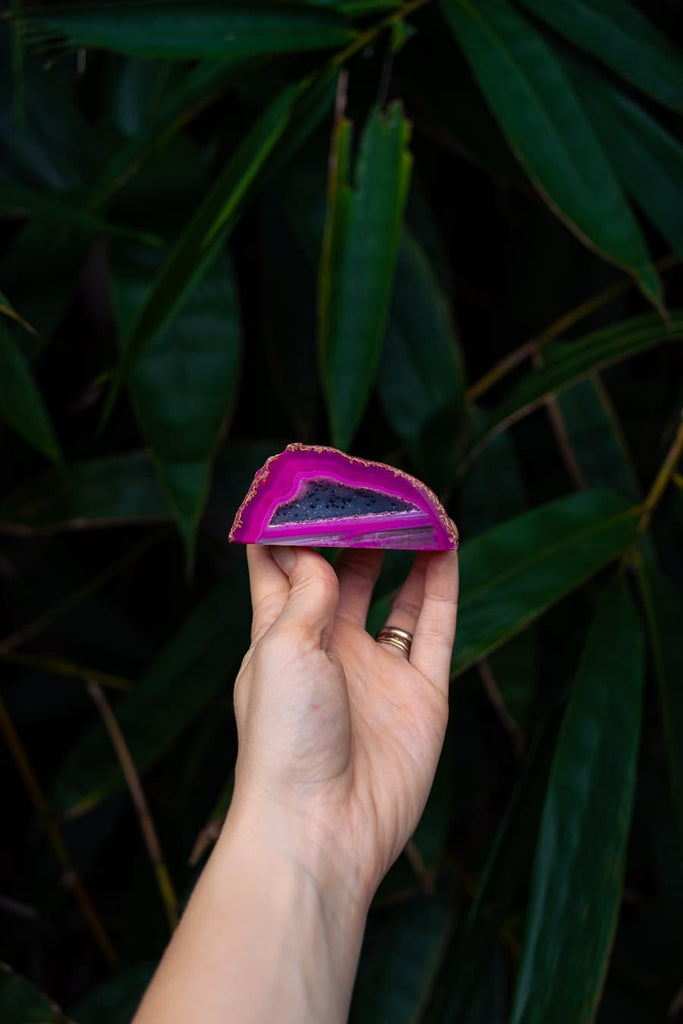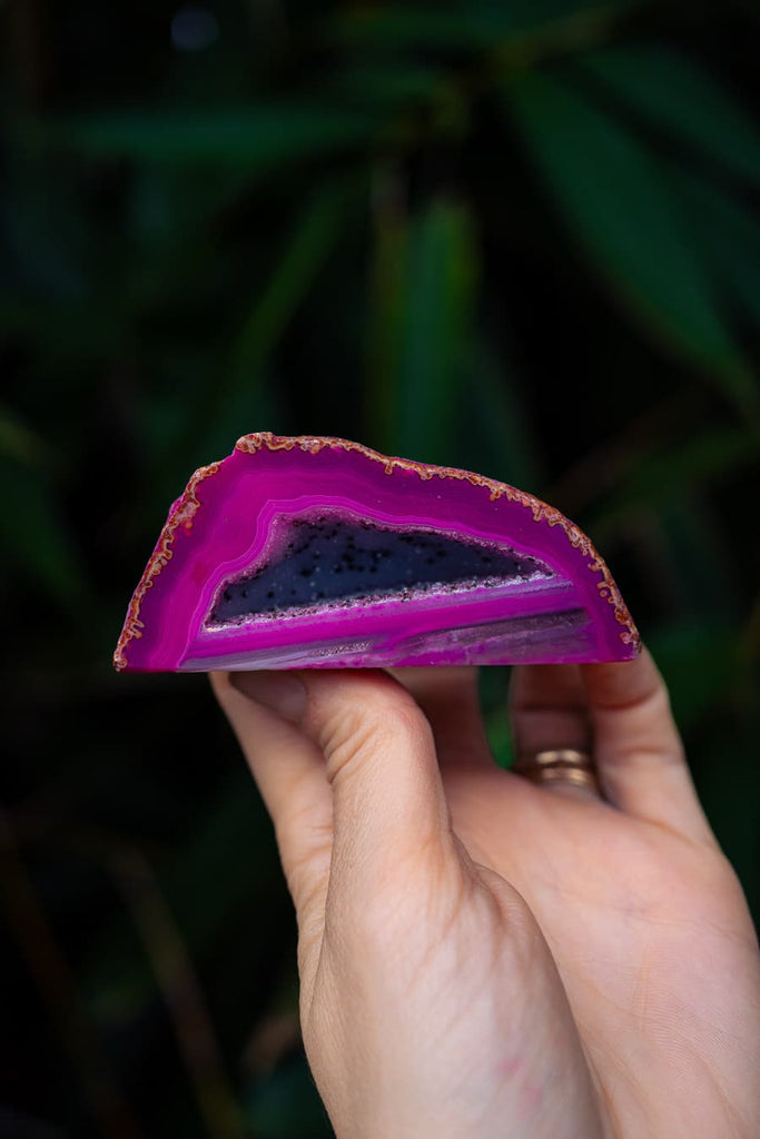 This petite perfectly standing Pink Agate Cave will make a magical addition into any space. Featuring vibrant Pink colouring and a sparkling druzy centre. Agate is a wonderful gemstone for balancing the mind, body, and spirit as well as helping you to slow down and centre yourself. Perfectly sized to display beside a bed, mantle or on a desk to bring about a touch of divine healing and serenity.