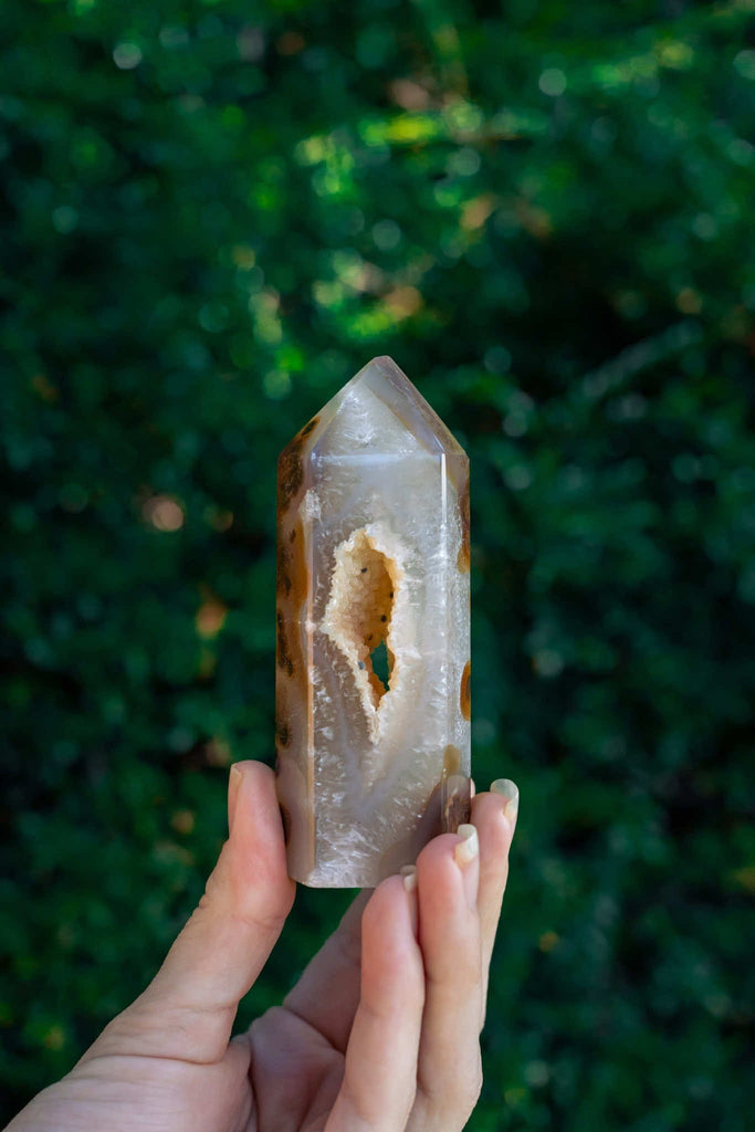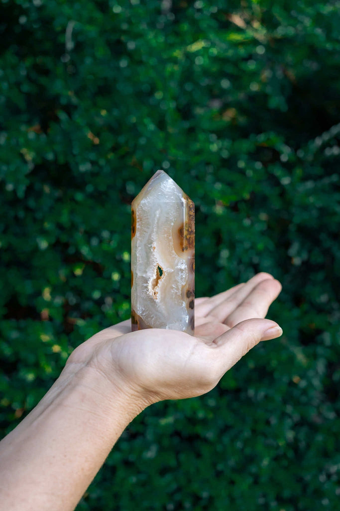 This divine Carnelian Agate Generator is perfectly polished into a powerful energy directing point formation. It will sit beautifully as a special piece within any living space or can be used for healing and meditation rituals. With its rich banded tones of warm golden brown, it's no surprise Carnelian is said to be a crystal of motivation, making it easier for people to take action especially in creative endeavours.