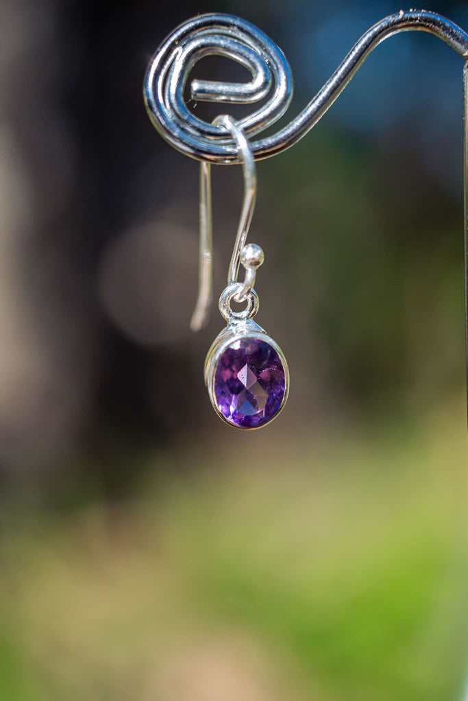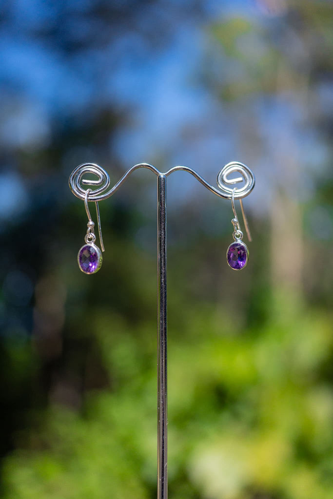 These expertly faceted Amethyst earrings sit within a 925 sterling silver oval while they shimmer and catch the light. Amethyst is often used as a symbol of peace and unification and is also thought to evoke feelings of serenity and calmness.