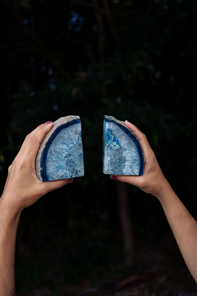 Blue Agate Bookends