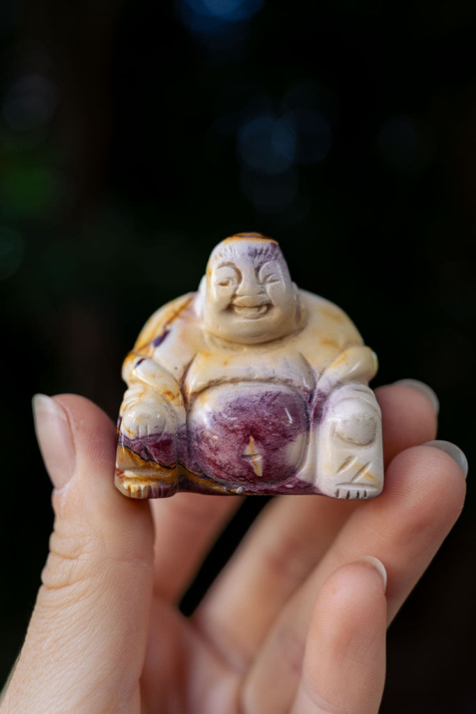 This delicate, hand-carved Mookaite Buddha is a beautiful and calming piece, perfect for adding a sense of peace and grounding to your space. Made from Mookaite, an Australian Jasper known for its rich earthy tones and soothing energy, this little Buddha radiates warmth and serenity. The natural variations in the stone's colours make each piece truly unique. Small but powerful, this petite Buddha serves as a gentle reminder to stay centered and present. It’s ideal for meditation, spiritual practices, or as a calming decorative piece in your home or office.