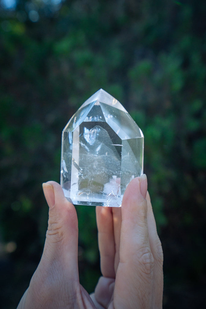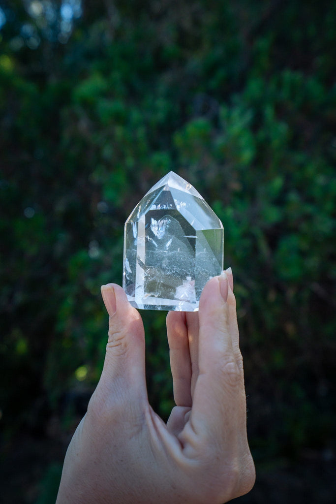This rare piece of Phantom Quartz outwardly appears simple but contains incredible depth and dimension. It contains a beautifully formed phantom peak inclusion dusted in chlorite; a tribute to the mountainesque landscapes from which this piece was found. Phantom Quartz is believed to connect deeply with the emotional body and assists the user moving past anger, resentment and fear to allow positive energy into their lives.